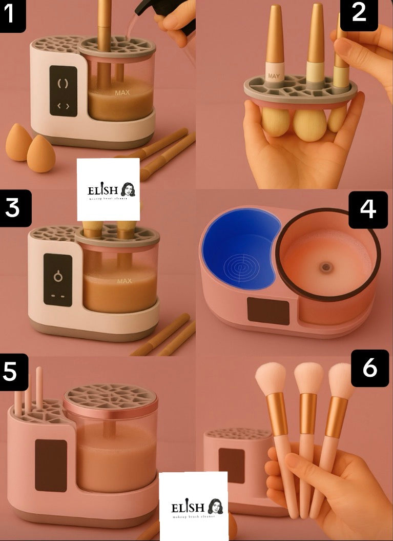 פשוט חברי את המברשות, הוסיפי מים וסבון לקערה ולחצי על כפתור. המכשיר משתמש בטכנולוגיה חשמלית חזקה לניקוי וייבוש המברשות בשניות, ומשאיר לך כלי איפור נקיים ומוכנים לשימוש.
